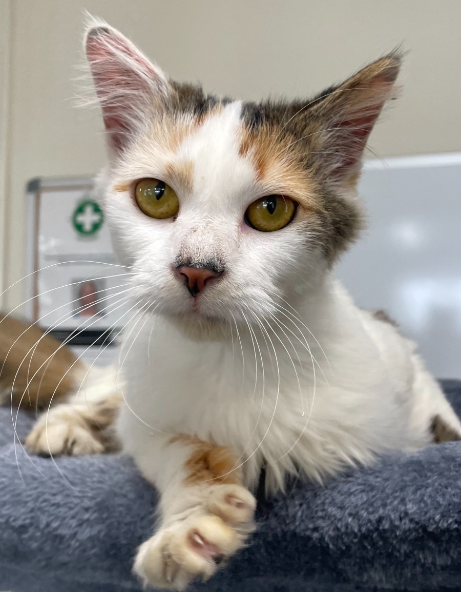 Meet Frankie, the epitome of resilience and affection. Despite her challenging start, Frankie has blossomed into an incredibly friendly and happy cat who’ll capture your heart at first sight. Her gentle nature is complemented by her charming confidence, making her a delightful addition to any household.