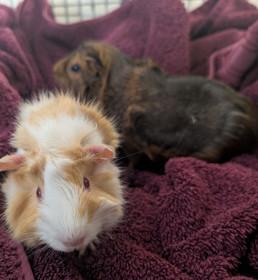 Their care includes daily fresh veggies, constant access to clean hay and water, and plenty of space to roam and explore. Regular cage cleaning and social interaction are also a must to keep them healthy and happy.