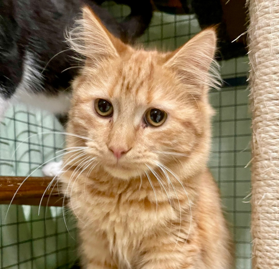 Flynn is a young ginger boy with a shy nature and a gentle spirit. He is still learning to feel safe in the world but is already showing heartwarming signs of progress. When he trusts you, he will curl up on your lap or roll over to show his belly, a quiet gesture of affection from a cat who has come a long way.