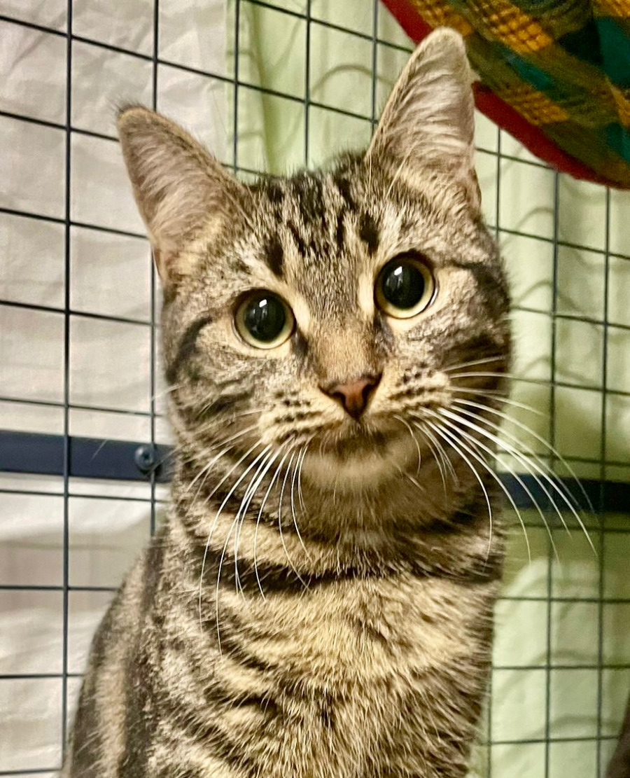 Frankie is a six-month-old male tabby with bright eyes and a thoughtful nature. He’s shy at first, preferring to quietly observe from the sidelines, but behind those cautious looks is a clever and curious young cat. With gentle handling and a bit of patience, Frankie has the potential to grow into a confident, affectionate companion.