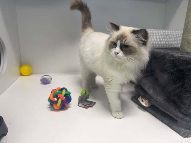 Hello human friend, I'm Winnie! I'm a 5-year-old female Ragdoll cat with a medium activity level. I'm quite playful, and I adore interactive games that challenge me! I'm a social butterfly and I love cuddling up with my human companions.