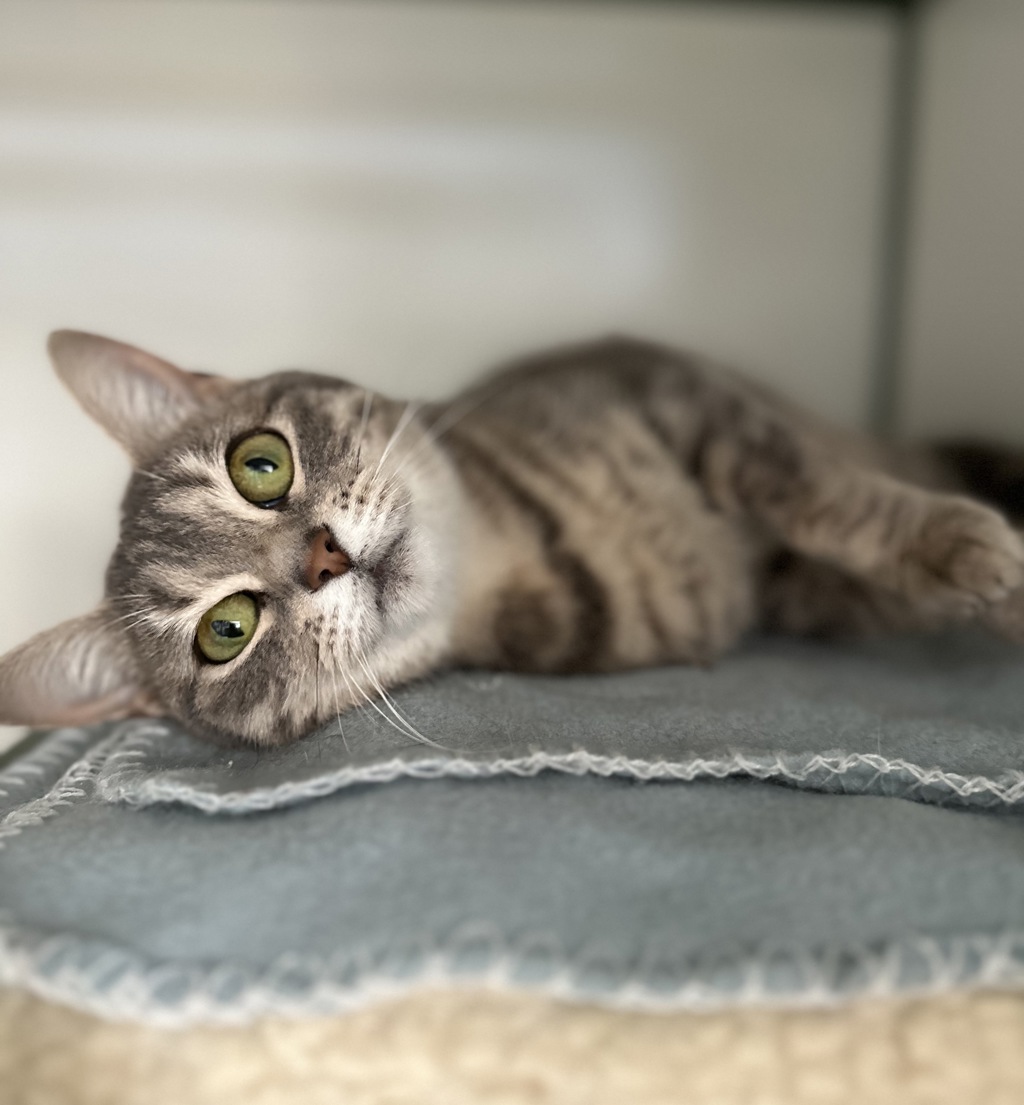 This little sweetheart is as comforting and warm as her name suggests! Hashbrown is a gentle and affectionate girl who loves nothing more than curling up somewhere cozy and enjoying the quiet life. With her laid-back nature and calm demeanor, she's the perfect companion for anyone looking for a low-fuss, loving feline friend.