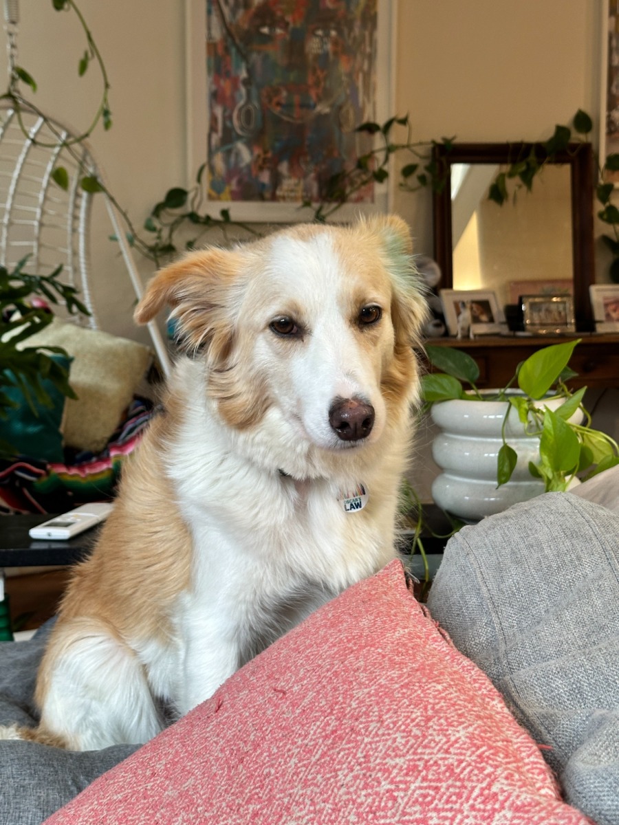 She’s very smart, being a border collie. She hasn’t been living the typical border collie life, so that will come slowly. She has no separation anxiety, is toilet trained, just learning to walk on a lead and eats well. She’s also fine with cats. A home with kids over 12 years old will suit her best.