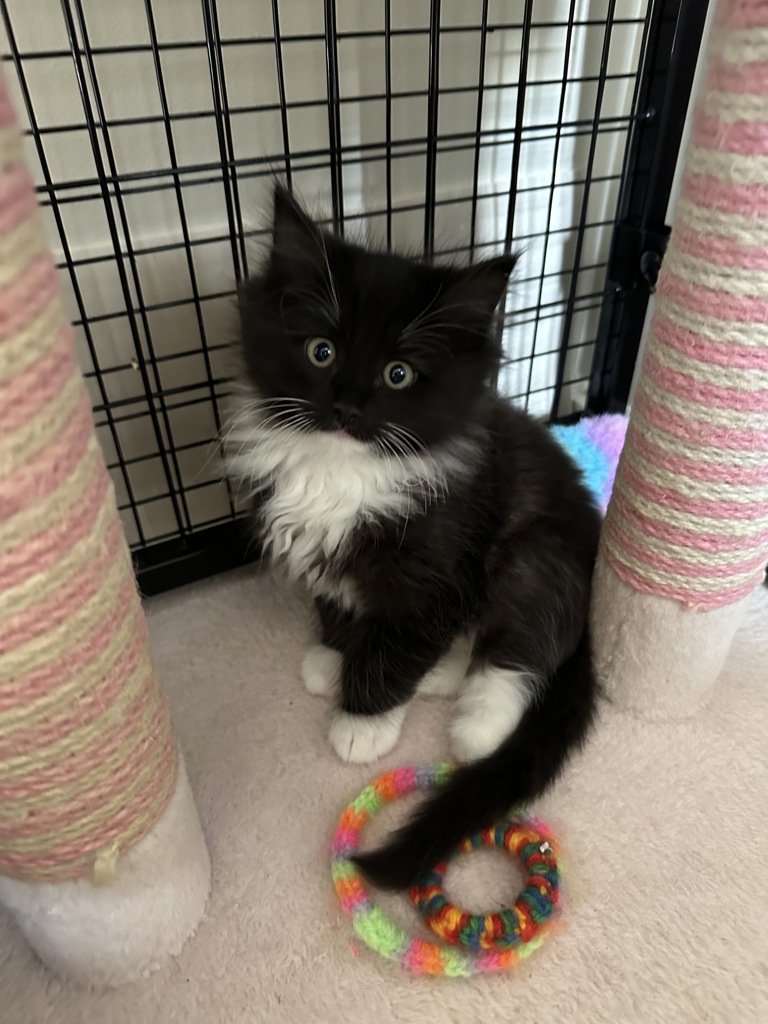 Crackle is a beautiful kitten with a gentle soul and a love for life. He's the kind of cat who will greet you with purrs, chase after soft toys with delight, and curl up beside you when the day winds down. Friendly and curious, he also enjoys the company of other cats and would do well in a social home.