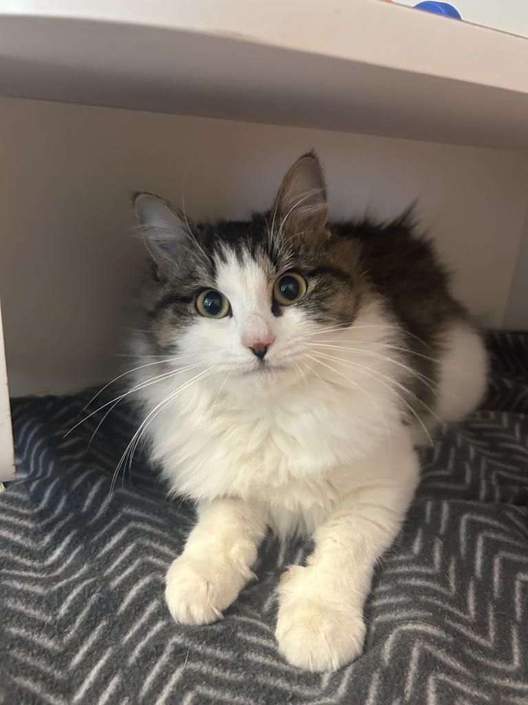 Nimbos is a gentle and friendly feline with a heart as soft as her fur. She loves making new friends-both human and furry-and has a curious fondness for water, often found dipping her paws or watching it flow with wide-eyed wonder. With her sweet nature and playful spirit, Nimbos brings calm and joy wherever she goes.