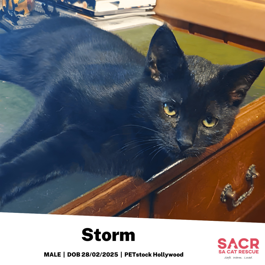 Storm is a sleek black kitten with a playful streak and a heart full of love. He’s intelligent, curious, and absolutely adores joining his foster mum at the computer—especially when she’s working on jigsaw puzzles. He’s not just a cuddly lap cat, he’s also a tech-savvy sidekick in the making!