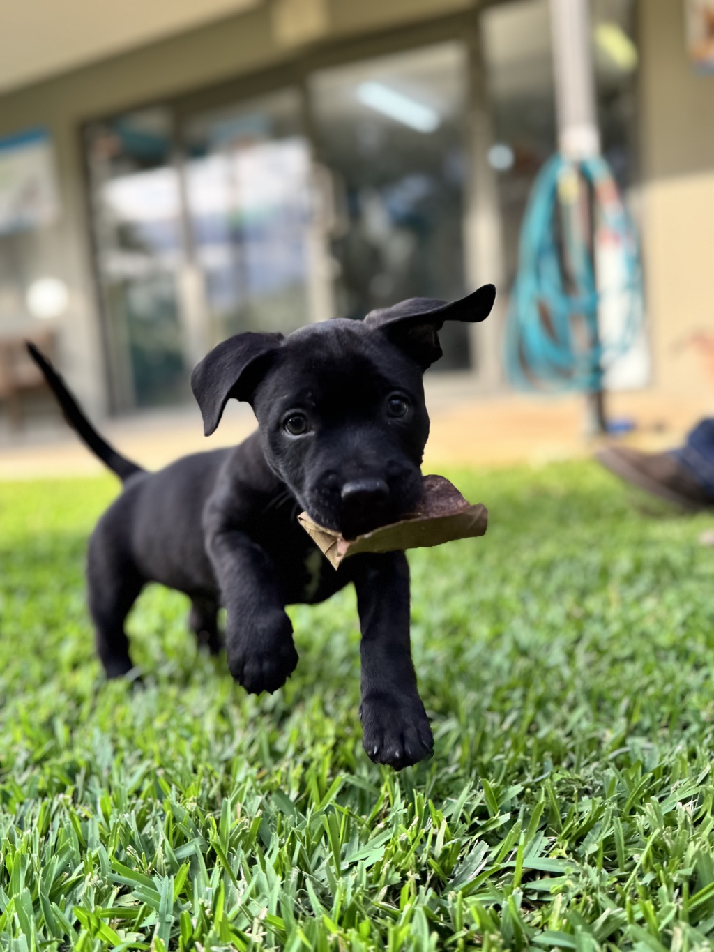 I am the cutest pup. I am not very big at 2 months old and don't expect to be a big dog. I was found in a bag at the riverside with my sister Ebony, so the staff at the RSPCA are not sure of my heritage. Naturally it was very stressful to be put in that situation so I was scared and noisy when left alone. I was needing love and attention so I was placed in foster care. I love to play with stuffed toys and never tear them up, but my favourite toy is a rattle that I chase around the floor. I use the fake grass toilet area provided in my enclosure so would be able to be housetrained quickly. I am very sweet and cuddly when held but still need to get that security from people when I am on my own. If you have the time to spend with me and show me that the world can be a kind place filled with love and affection, then I will thrive.