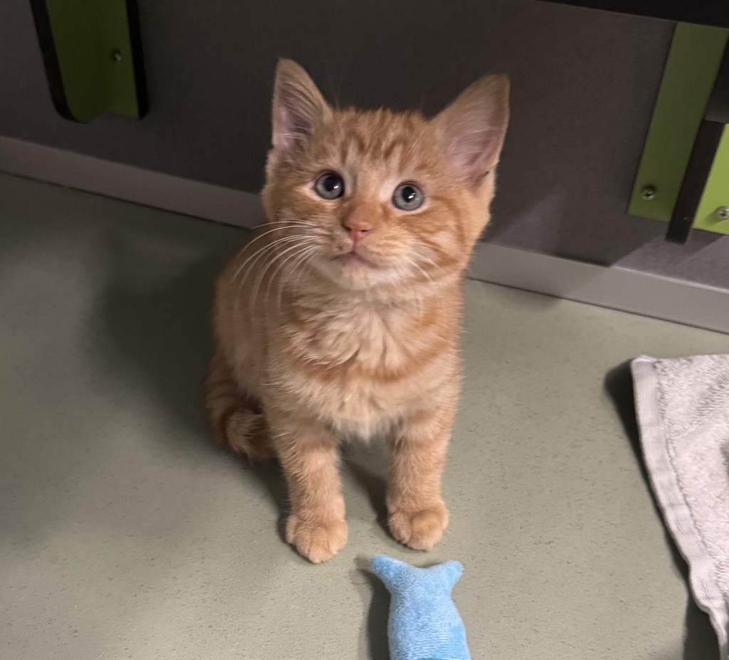 I'm just a kitten, but I've got a big heart. I'm a sweet and friendly little guy, though I can be a bit shy at first. Give me a little time and I promise I'll warm up to you. I love to play, but I'm also quite fond of cuddling. I'll happily curl up in your lap for a nap after a good play session. I'm a bit of a chatterbox too, I like to 'talk' to my human friends. I think I'd be perfect in a home with older children who can understand my need for a gentle touch. I may be small, but I've got a lot of love to give. If you're looking for a sweet, playful, and cuddly companion, I could be the kitten for you.