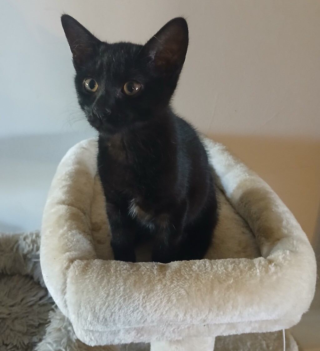 My brother Bert and I were surrendered to the RSPCA and we went into foster. Bert has been adopted and I just had my vetwork done, so I am ready to be adopted. I am a sleek, beautiful boy and I have the best personality that my foster family have ever met. I am full of playful energy but I also run up to you and purr as soon as you pick me up. I love to sit with you on the couch and curl up next to you and sleep. I get on well with older cats and I am not fussed about small dogs being around me. I have had run of the house and I am very confident, climbing high, jumping up to get hanging toys and also running fast in play with other cats. I am intelligent, knowing where my feeding station is every meal time and enjoying my food!