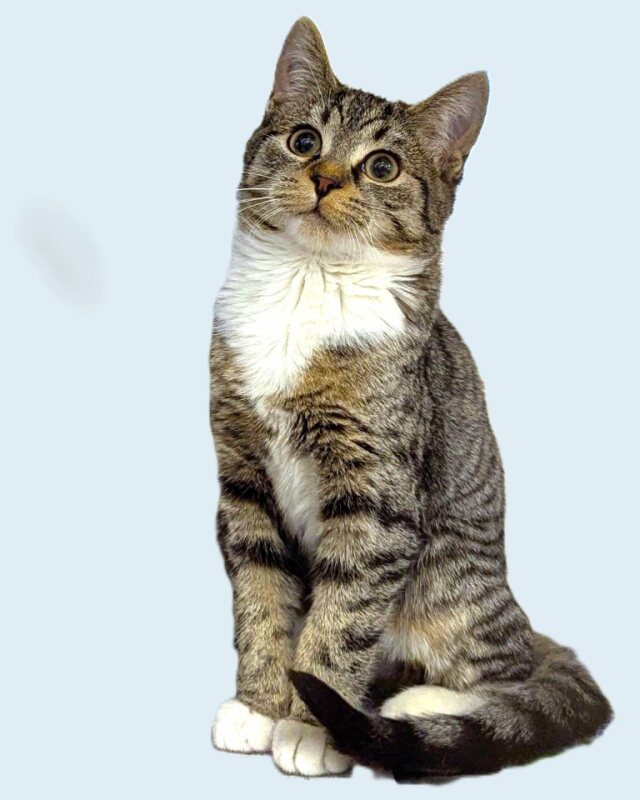 Hi there! I'm Binky, a lovely little female Domestic Short Hair kitten. I'm so excited to meet you! At just 5 months old, I'm still discovering the world around me, and I'm so ready to find my forever family to explore it with. I'm a bundle of fun and love, always eager to play and cuddle. My soft fur is perfect for petting, and my curious eyes are always looking for new things to investigate. I'm also pretty smart, and I'm quickly learning all about litter boxes, scratching posts, and the joy of a good nap in a cozy bed. I may be little, but I've got a big heart and lots of love to give. As a young kitten, I'll need some time and patience to adjust to my new home and learn all the rules. If you're looking for a playful, affectionate, and adventurous furbaby, then I might be the purrfect match for you. Can't wait to meet you and start our wonderful journey together!