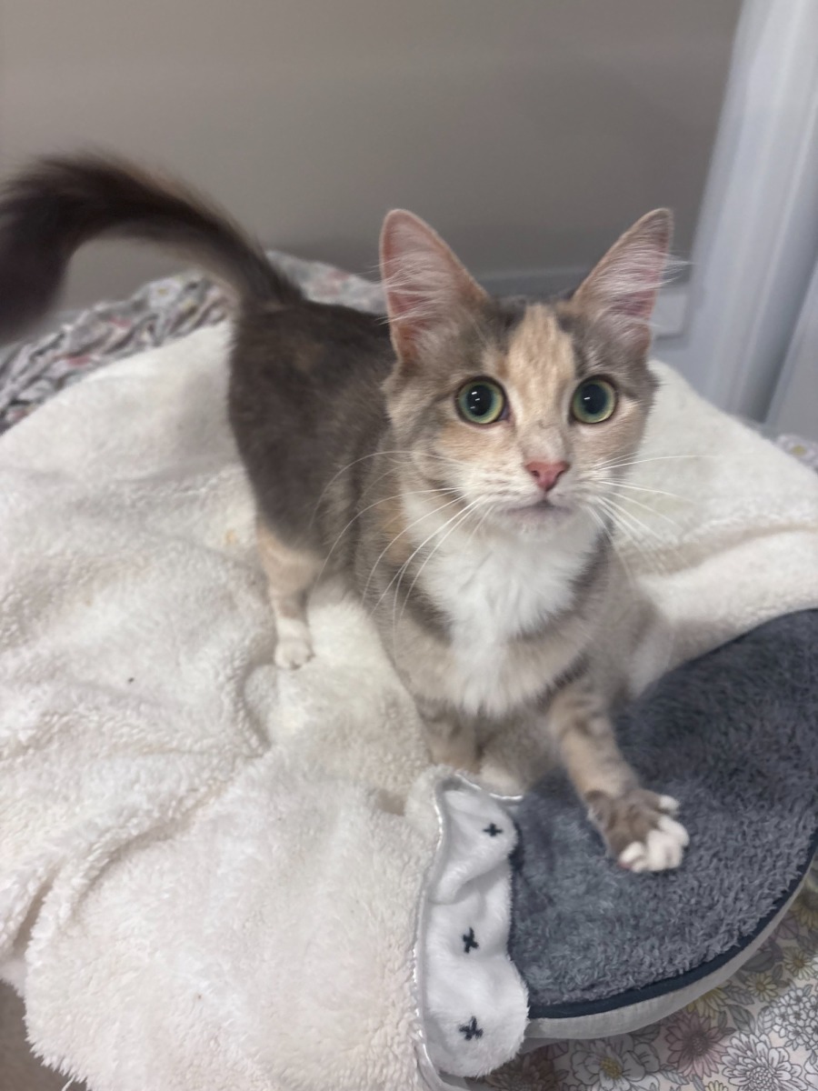 This young, kind, and incredibly gentle cat arrived at the pound earlier in the year heavily pregnant and, with remarkable resilience, gave birth to her beautiful kittens. She's been a truly wonderful and attentive mother, showering her little ones with love.