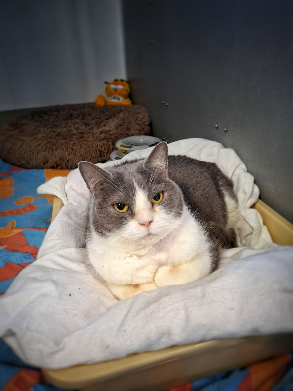 I may be a little older, but don't let that fool you - I'm as affectionate and full of heart as they come. If you're not giving me enough attention? Oh, you'll know about it. I'll do my famous crocodile roll right at your feet until you give me the pats and cuddles I so clearly deserve. I'm not subtle, but hey - life's too short to play hard to get!