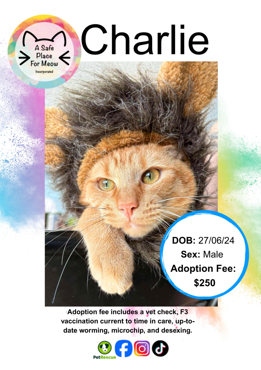 Despite the diva vibes, Charlie’s love is real. He’ll shower you with affection, demand snuggles, and keep you laughing with his confident, larger-than-life ways.