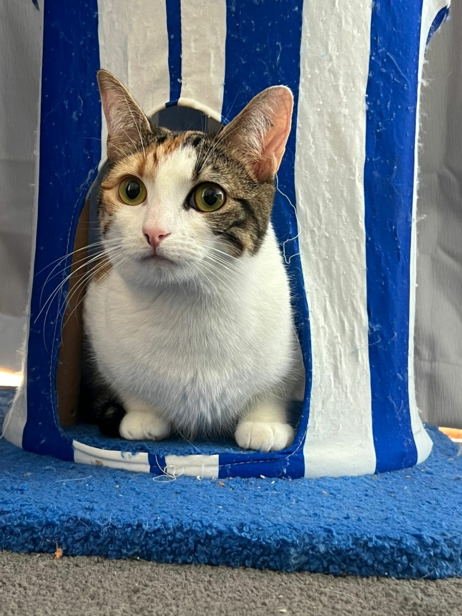 I love to play with toys, I love to help you make the bed and I will keep it warm while you are at work. We could be best friends but you don’t even know it yet! I like other cats now but I’m still learning to like and trust dogs - but if you have a space for me to hang out while I get used to one; I think we could make life happier for you.