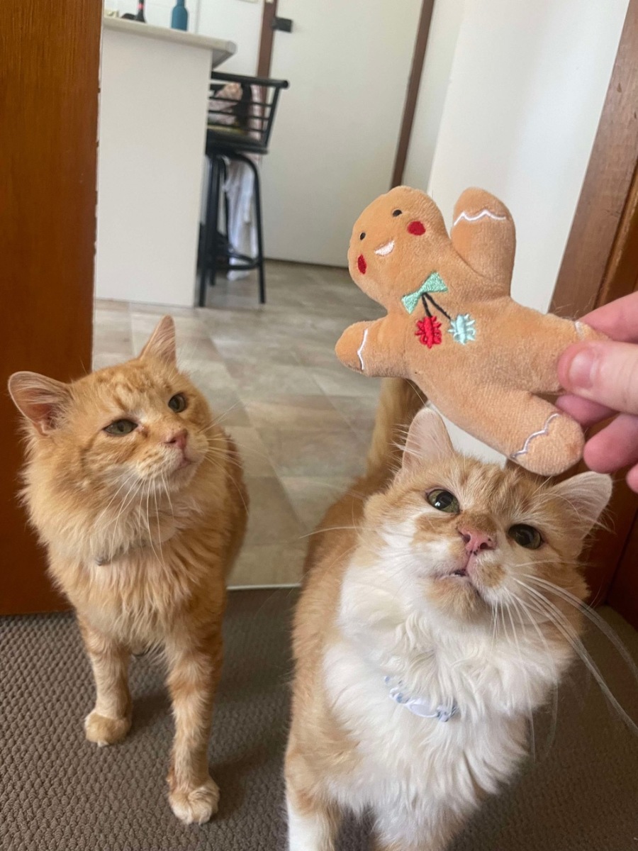 These brothers are a truly perfect pair. One really likes to be on you, and one near you! These boys have had a bit of upheaval in the last few months - they lost the only home they had ever known when their owner went to palliative care. They came into rescue, got adopted and then came back again due to no fault of their own.