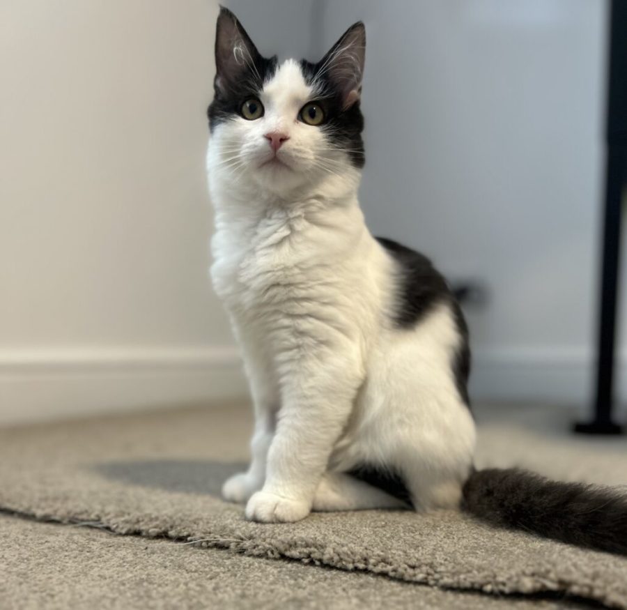 Looking for a kitten who’s equal parts cuddle and chaos? Say hello to Shadow, a charming black and white bundle of joy who’s ready to steal your heart (and maybe your socks)!