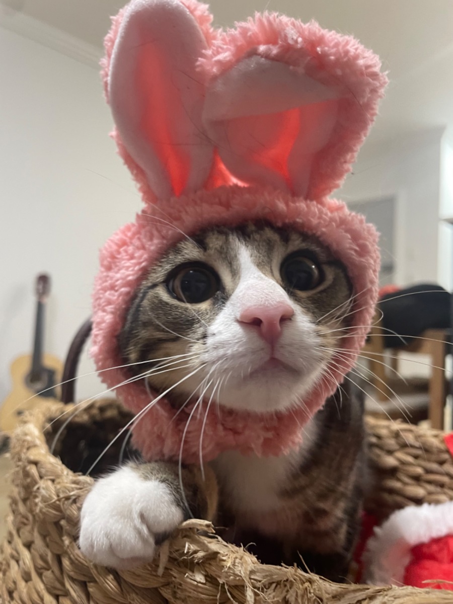 Being a younger kitten she has little bursts of energy during the day and plays well with any toy you offer but is also happy to just settle on your lap and patiently follow you wherever you go.