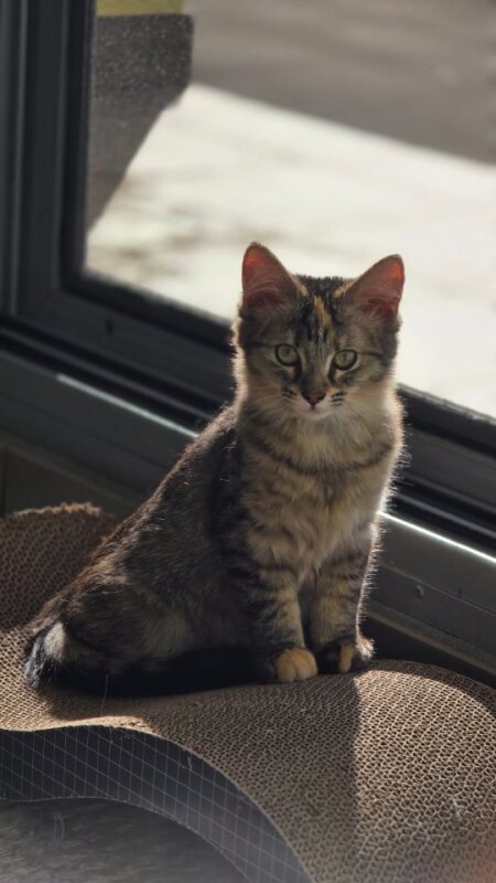 Willow is a delicate tabby kitten with soft stripes and thoughtful eyes that seem to take in the world from a safe distance. Naturally timid, Willow needs time, patience, and a gentle hand to feel truly at ease—but once she trusts you, her bond is deep and rewarding.
