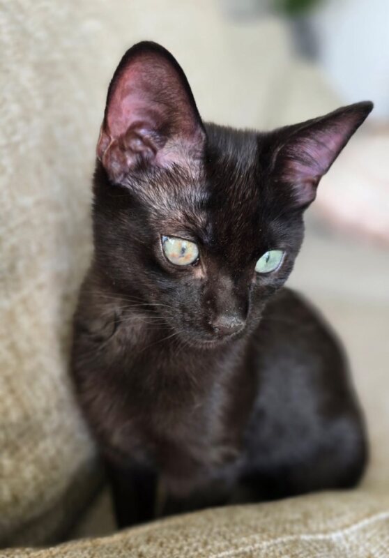 Wizard is a sleek black kitten with wide, curious eyes and a heart as soft as his fur. This little one may be timid at first, but with patience and love, he blossoms into a sweet and loyal companion. He thrives in quiet, calm environments where he can feel safe and take his time getting to know you.