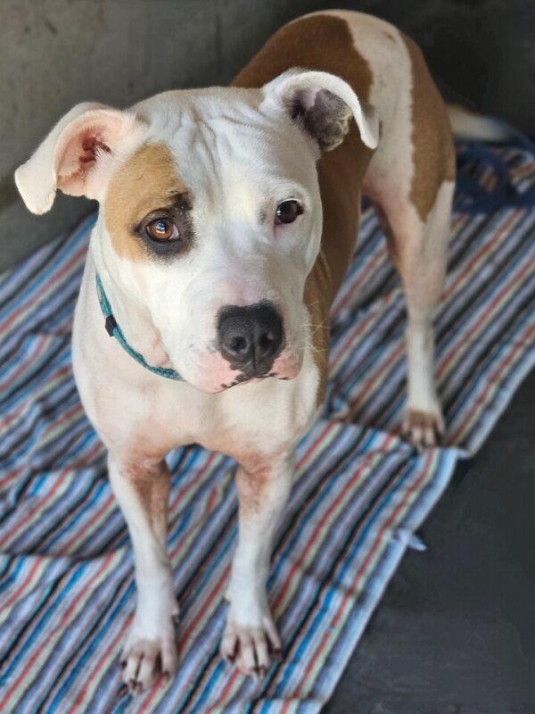 Hello there! My name is Kaida, and I’m a 1-year and 7-month-old American Bulldog lady with a gentle soul and a heart full of love. I’m looking for a peaceful home where I can thrive, ideally with someone who’s around most of the time—perhaps a person or couple who appreciate the joys of a tranquil lifestyle, just like me. I’m not fond of a busy, bustling environment—I much prefer a calm, quiet household.