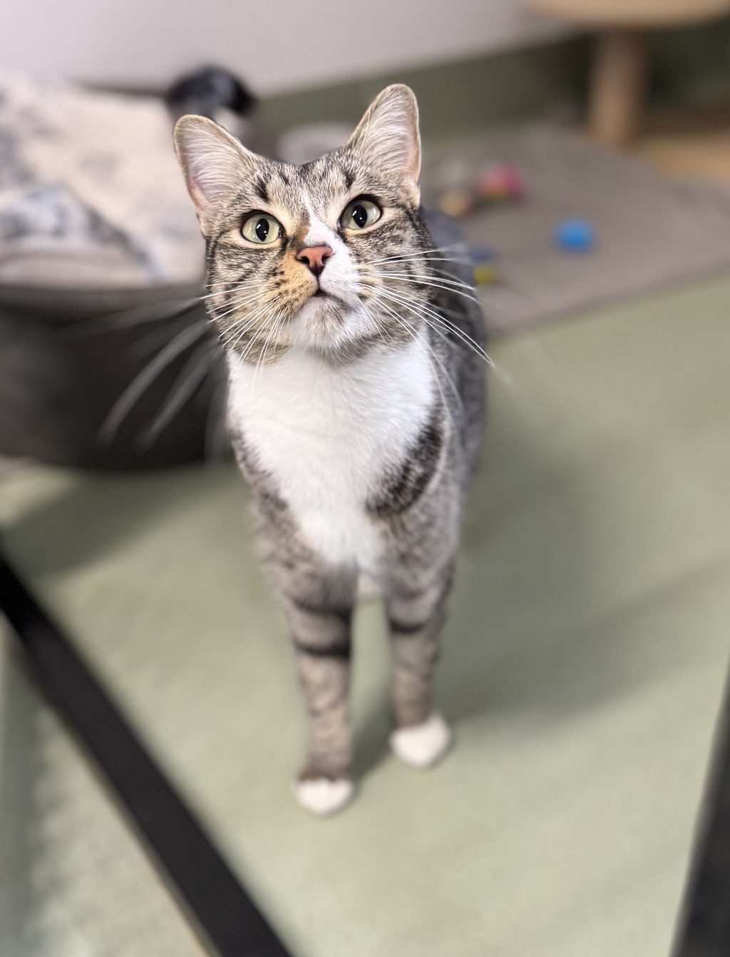 I'm super affectionate and love being around people of all ages - kids included! If you've got attention to give, I'm here for it. Pet me, talk to me, snuggle with me - I'll soak it all up like sunshine. I'm the kind of cat who'll greet you at the door and make you feel like the most important person in the world.