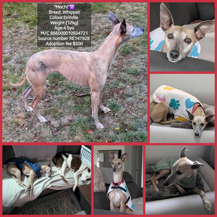 Ideally we'd like to see Mochi go to a furever home with someone who works from home or a retired couple/person who she can spend her time with whether that is at home or on holidays with you.