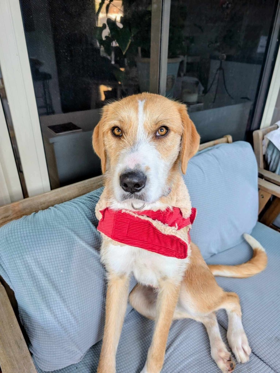 Revlon’s quiet nature and soulful eyes make her the perfect companion for someone who appreciates peaceful walks, cozy cuddles, and the kind of loyalty only a rescue dog can offer. Whether she’s sharing the couch with a canine buddy or soaking up affection from her humans, Revlon is all about gentle joy and quiet companionship.