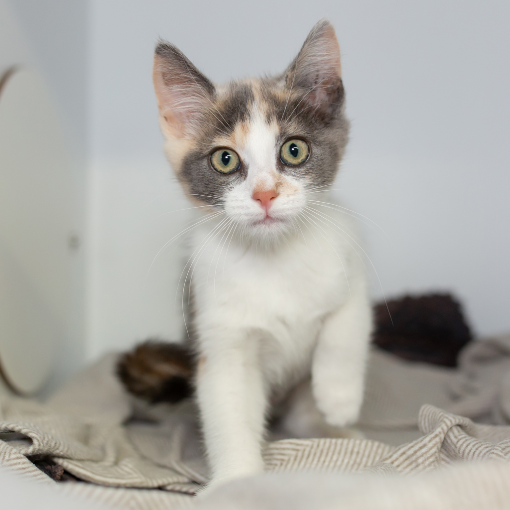Meet Shelly - a pretty little kitten with a playful heart and a love for human company! Shelly is full of kitten energy and curiosity, always ready to chase a toy or explore a new corner of the house. But more than anything, she craves connection and thrives when she's around people. She's looking for a loving home with someone who has time to help her settle in and build a strong, trusting bond. With a little patience and a lot of love, Shelly will blossom into a loyal, affectionate companion who brings joy to every day.