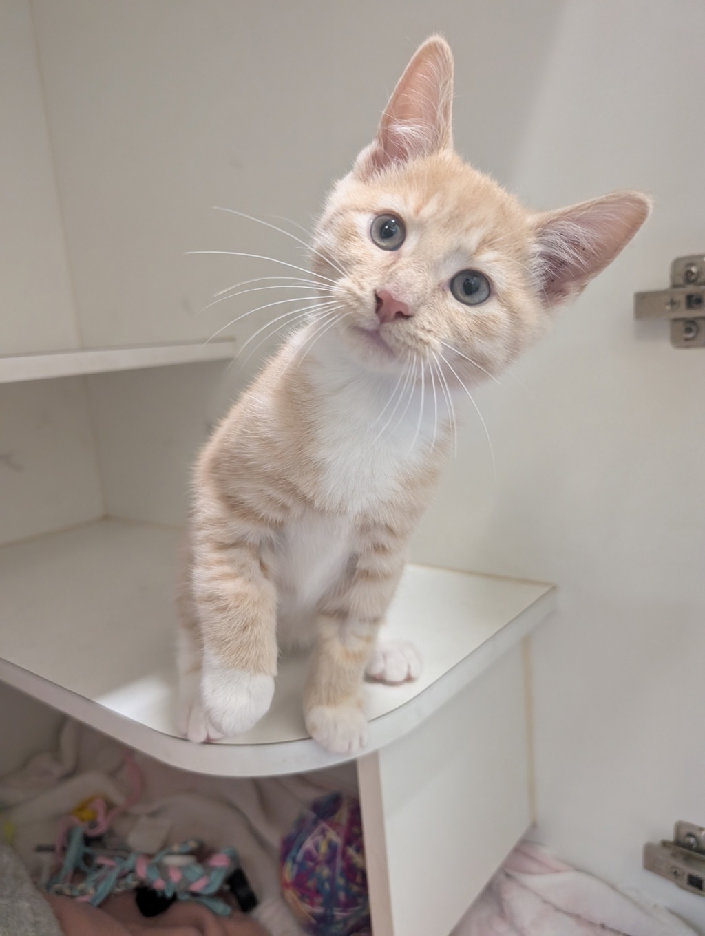 Hi, my name is Moxi. I'm a sweet, shy kitten, but I don't take long to come out of my shell. I am looking for a patient home that will love me forever. If you think that I'm the one for you, then please come to the RSPCA in Malaga to meet me today!
