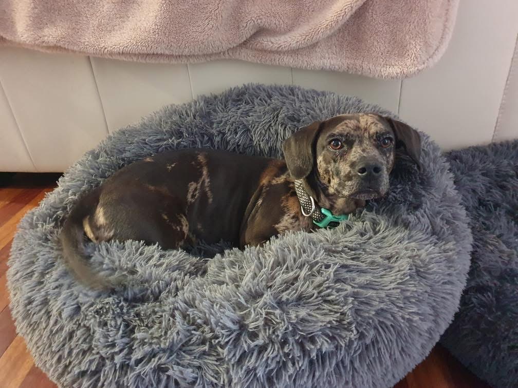 He’s incredibly friendly with people and other dogs, making him a great fit for a home with furry siblings. He can be a bit rough with younger kids so a home with older kids or no kids would be ideal. And the best part? He’s pretty good on a lead.