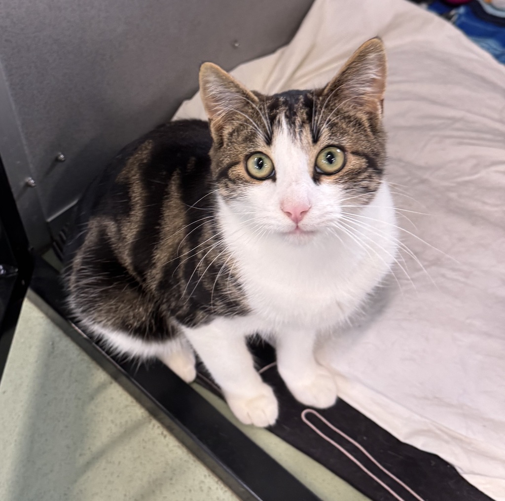 Say hello to Burt, a confident, vocal little gentleman with a whole lot of love to give! This sweet and outgoing kitten isn't shy about letting you know when he wants attention-which is often-and he'll happily chat away while following you around.