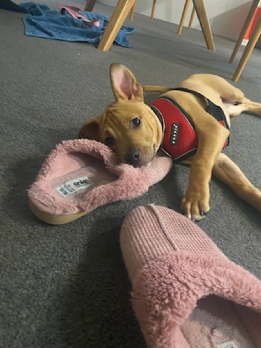Like any young pup, Rowena is still finding her feet and will need some help with toilet training and learning the basics. She’s full of potential and with the right guidance, she’ll grow into a loyal and well-mannered companion.