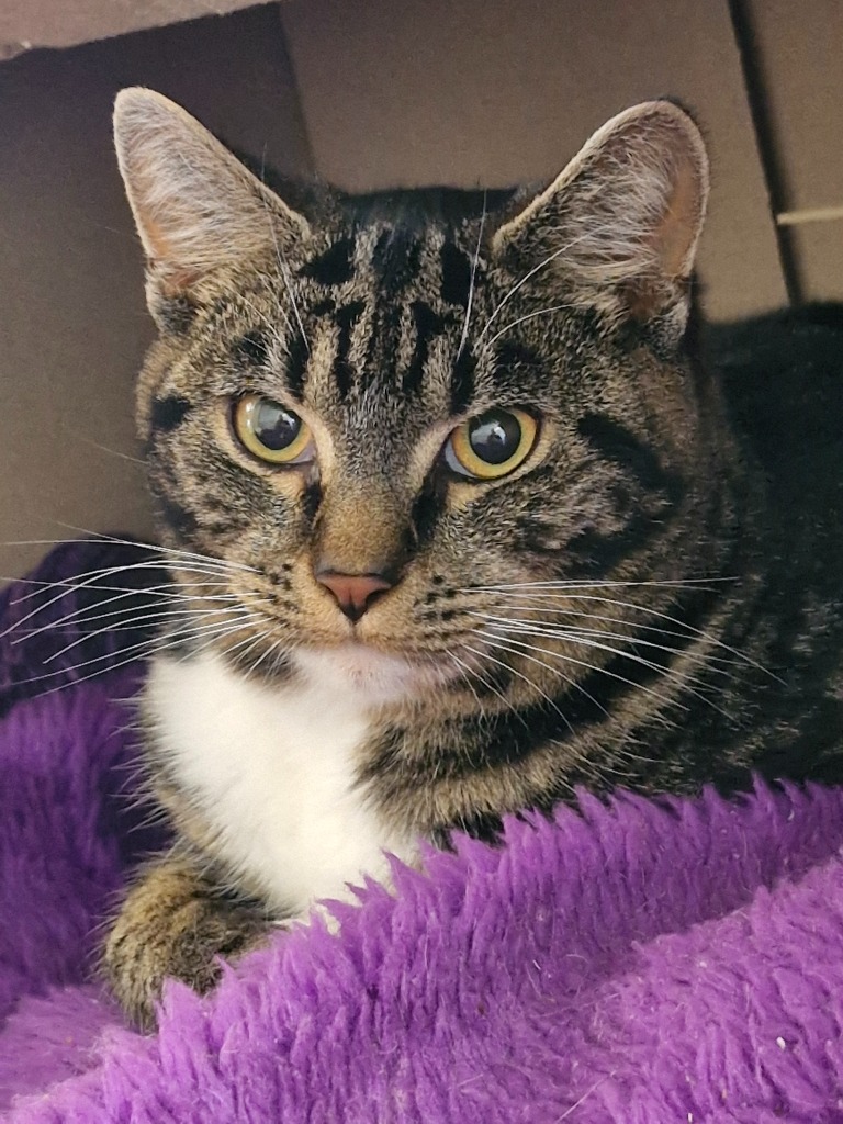 Dexter is a stunning tabby and white boy with a story to tell. He came to Just Cats from a multi-cat home, where he was used to being around people and being fed by them but he’s still learning that people can offer more than just food; they can offer love and safety too.