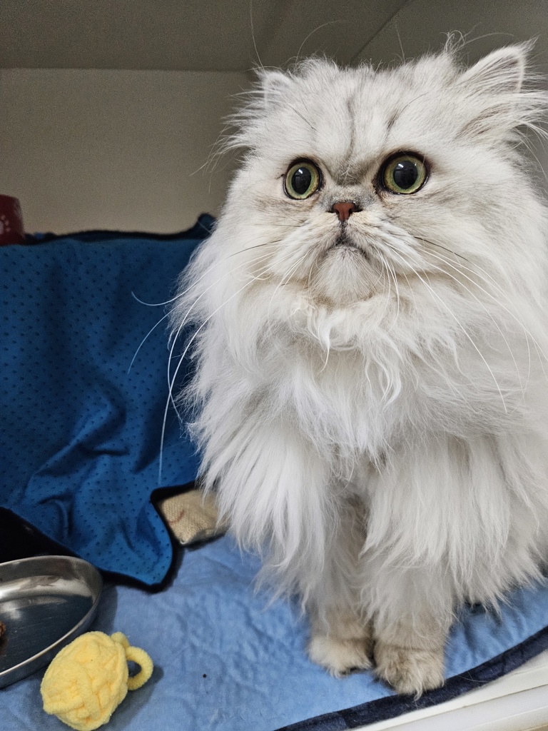 Kara is a stunning 1-year-old Persian cat who's currently rocking a shaved look, but don't let that fool you-her signature long, luxurious coat is already growing back and will soon be as beautiful as ever. As her fur returns, she'll need regular grooming to keep her coat healthy, soft, and mat-free, so she's looking for a home that understands the beauty and responsibility of Persian cat care.