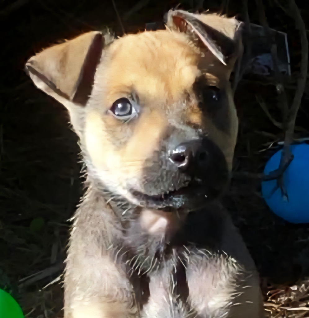 Meatloaf is a typical puppy: full of beans, inquisitive and alternating between bursts of playful energy then plenty of naps! He loves charging around with his siblings and even plays with the free ranging rabbit in his foster family. Meatloaf is in care with a toddler too so is used to noise and being stroked by a child. He can be a little timid of a large dog he met so puppy classes where he gets used to being around other similar age pups where he'll gain confidence, is recommended.