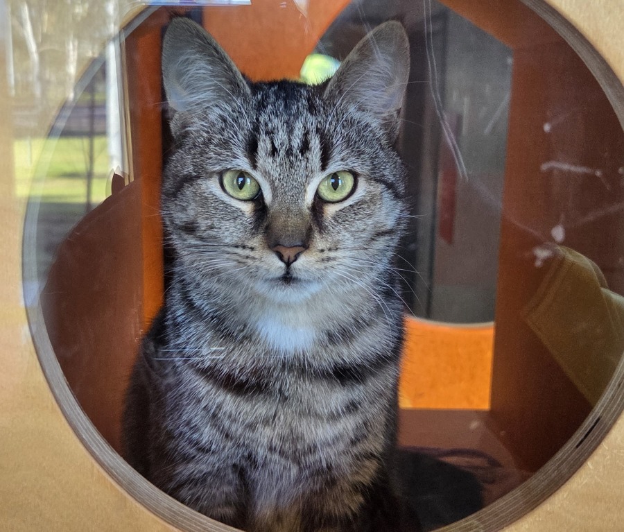 Spud is a playful, energetic cat bursting with personality! He loves chasing toys and showing off his quirky antics. Spud is also a cuddle bug, known for his sweet love nibbles, soothing purrs, and love of being held.