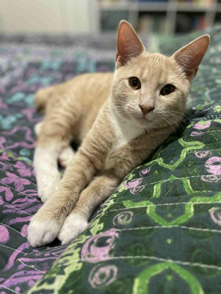 He takes a little time to warm up to other cats, but once he’s settled, he’s all in. And yes – he’s got a stumpy tail, but don’t worry, it doesn’t slow him down one bit!