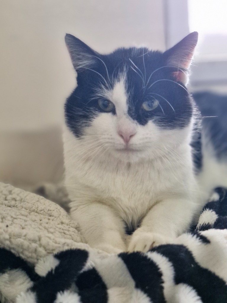 Introducing Barra, a charming black-and-white bobtail cat with a tale that's truly off the scales! This clever feline was discovered inside a fish factory, helping himself to a seafood snack—talk about being caught red-pawed! His love for fish earned him the name "Barra," and he's been reeling in hearts ever since.Barra is a sweet and affectionate boy who's ready to make a splash in a loving home. While he hasn't shared his history with us, we do know that he's untested with dogs and other cats. Given his initial shyness around loud noises, a calm and quiet environment without small children would be his ideal habitat. This fin-tastic feline is looking for a forever home where he can feel safe, loved, and maybe even enjoy the occasional fishy treat (with your permission, of course!). If you're ready to add a pawsitively delightful companion to your life, Barra is waiting to be your sole-mate.