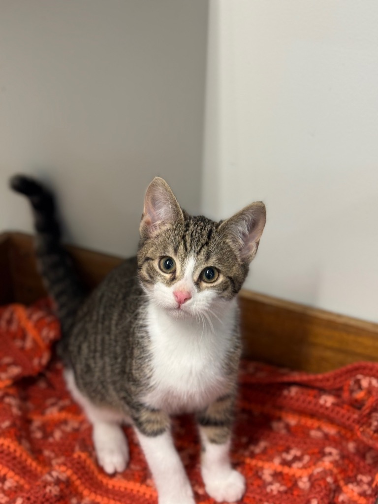 Tango is the boldest of his siblings, always the first to leap into a new adventure. Whether it’s climbing a scratching post, chasing a feather toy, or investigating a new room, Tango does it all with confidence and flair. He is curious, energetic, and always ready to turn life into a game. Tango is great with other cats, untested around dogs and kids but with a slow introduction should do well. Come and meet him at our Longford Centre.