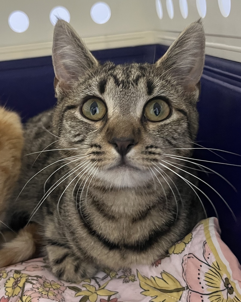 Meet Banana Bread, a bright and bubbly girl with a big personality and even bigger heart! Full of charm and curiosity, Banana Bread is a sweet and clever kitty who loves to explore and play. Banana Bread is the kind of cat who thrives in a stimulating environment. She'll need plenty of enrichment to keep her sharp mind busy-think puzzle toys, climbing trees, interactive playtime, and cozy spots to survey her kingdom Her expressive nature and intelligent eyes make her a fun and engaging companion. If you're looking for a feline friend who will keep you company, keep you entertained, and keep you on your toes, Banana Bread a is ready to bring her lively spirit into your home and heart.