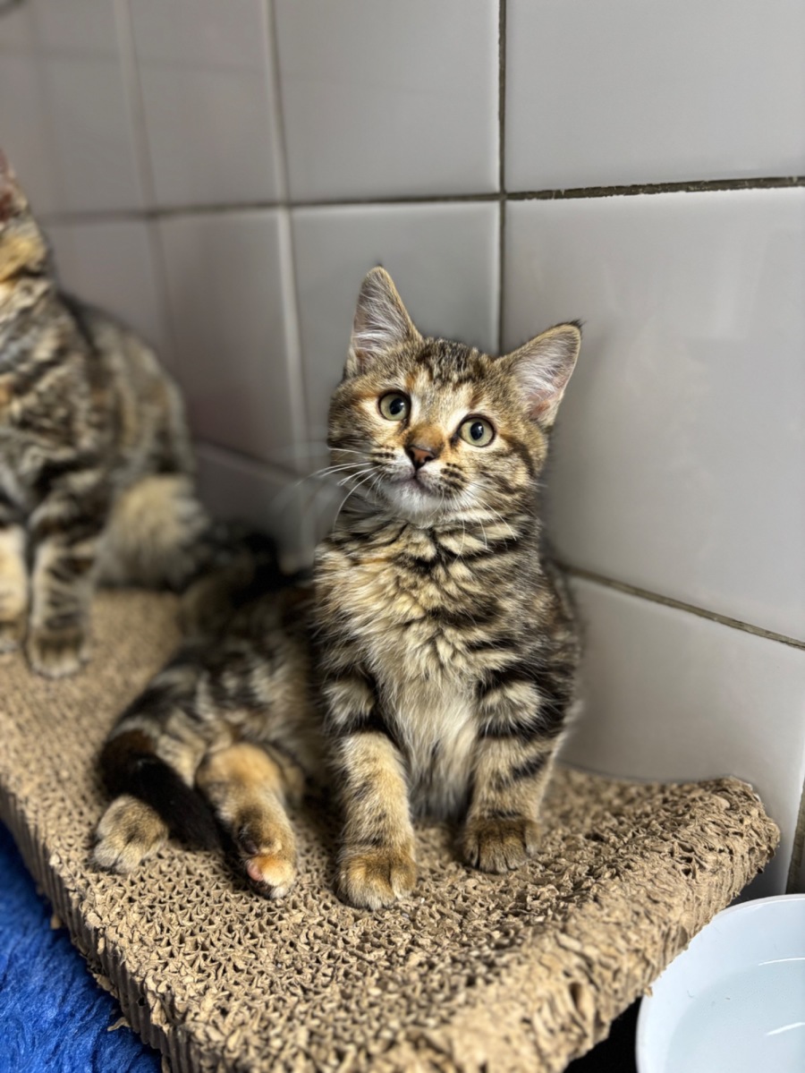 Meet Tallulah, an adorable 10-week-old Female Torbie Domestic Short Hair kitten whose heart is as big as her curious, twinkling eyes. This tiny bundle of fur is affectionately sweet and ready to bring warmth into your life. With her gentle nature and friendly spirit, Tallulah is eager to find a loving home where she can grow and flourish.