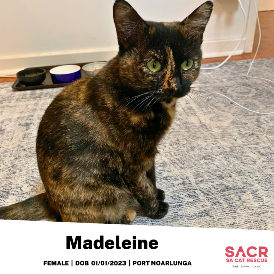 Madeleine is a dainty little tortoiseshell girl with a huge heart and an even bigger love for human company. She's sweet, confident, and just the right amount of sassy – the kind of cat who makes herself quietly indispensable from the moment she arrives.