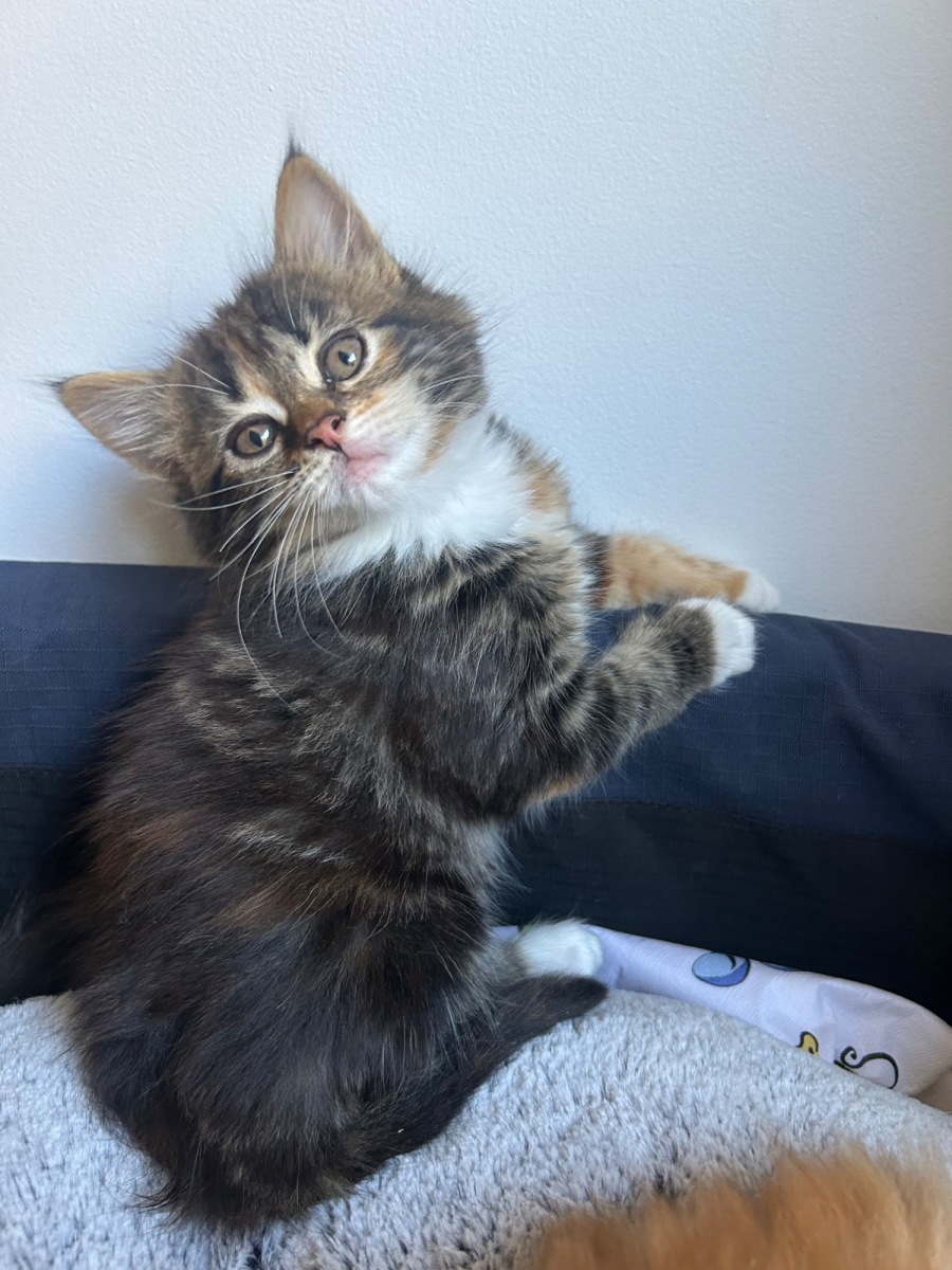 Binky is absolutely stunning! She is fluffy, sweet, playful, and full of charm. She’s truly loveable and would make a beautiful addition to any loving home. Binky is sure to grow into such a loving and beautiful cat who would make the best little companion.