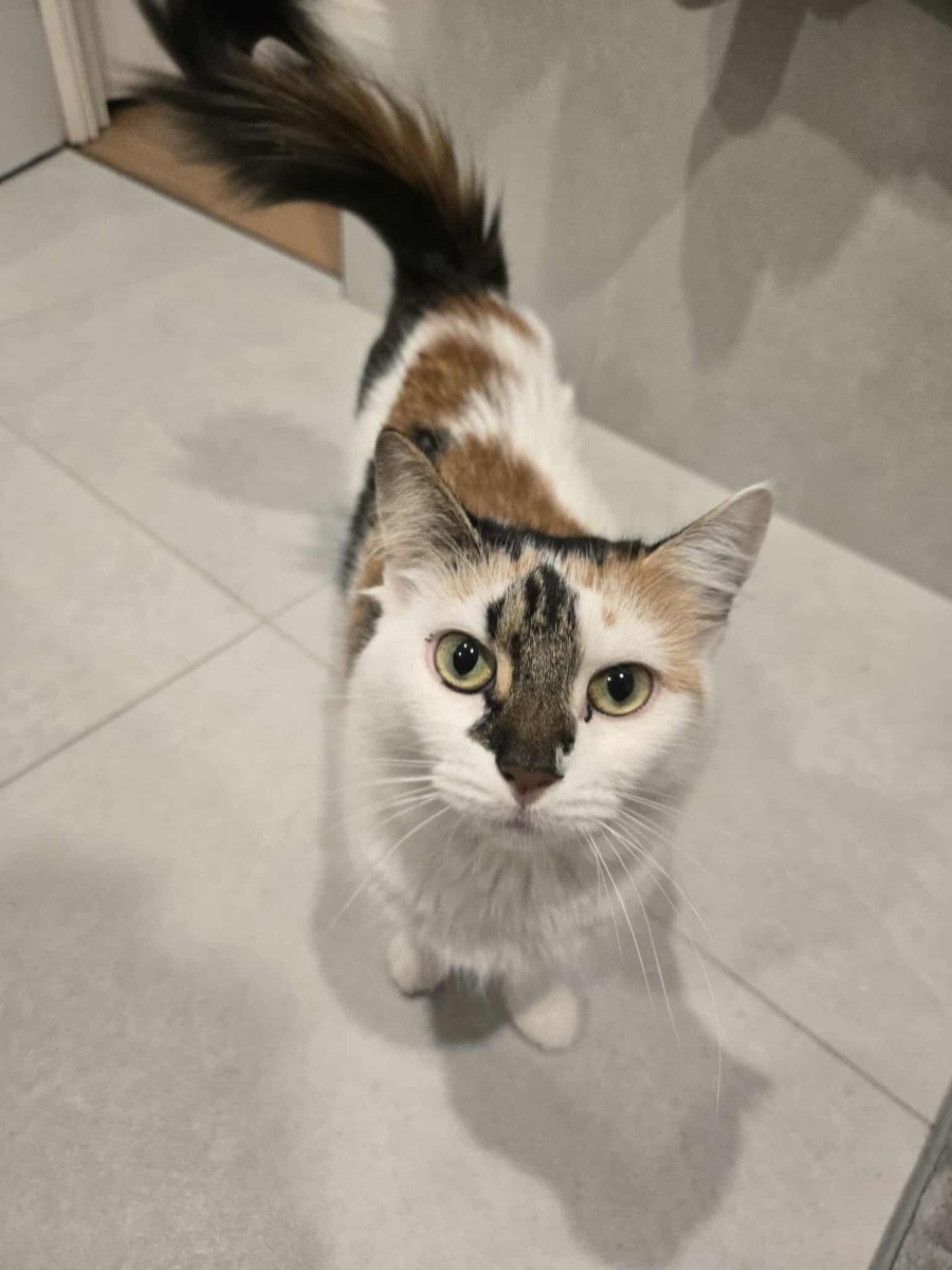 Charlotte has such beautiful fur with unique markings and such a fluffy tail. Many people seem to think her markings aren't very appealing, but we think her uniqueness is gorgeous and what makes her special. She doesn't look like any other cat and that's why she is perfect! We love a calico girl, even more so one with smudges on her face and a fluffy tail!