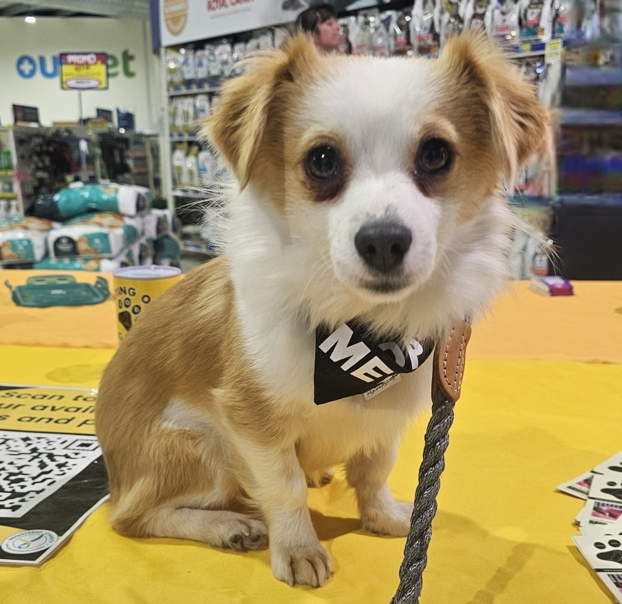 Appleby is dog friendly (loves a sniff and lick) and would be ok with dog savvy children that can read his body language. Appleby is also cat friendly.