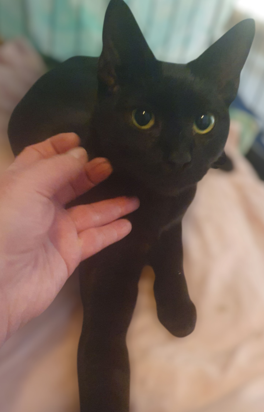 Sooty is a handsome boy who is a real character. Confident, energetic, highly curious, and extremely affectionate he is just one sleek bundle of energy and joy. Soot is into checking out everything, running around and playing and exploring. He likes to go between indoors and outdoors where he can enjoy short spells in the garden.