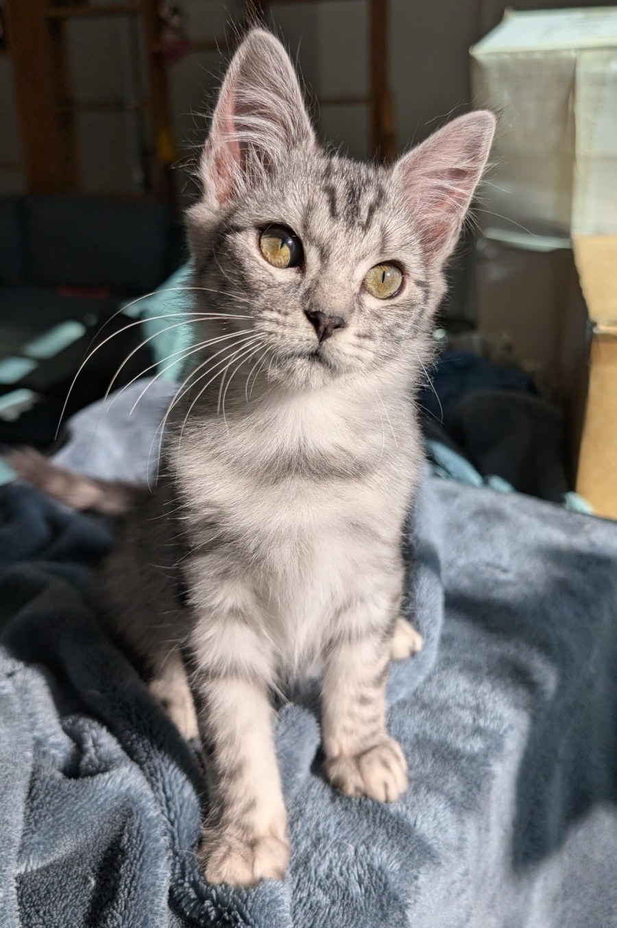 Percival is a tabby kitten with a medium coat. He has gorgeous patterns and a lovely soft coat. This kitty is an all-rounder, friendly, ready to purr and loves to hang out with us whenever he gets a chance.