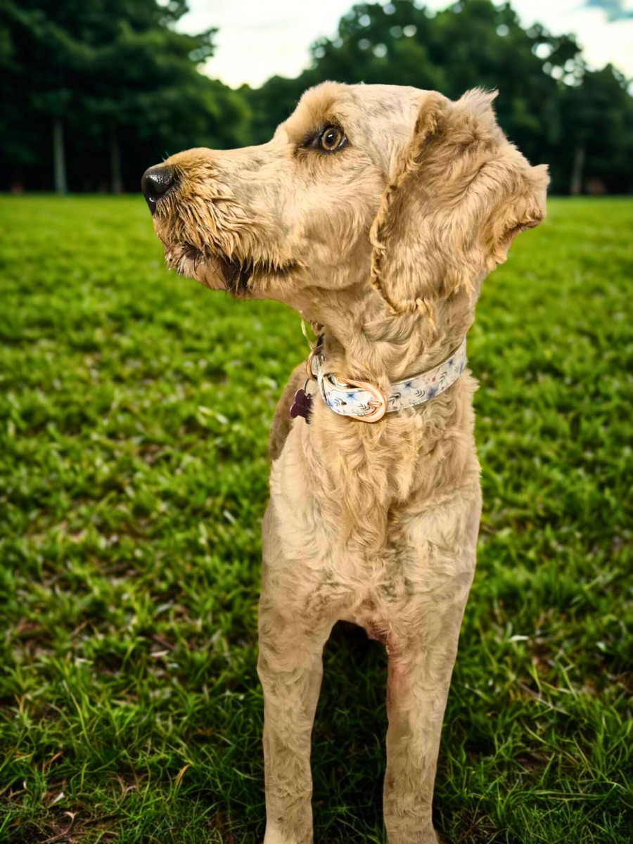 Shayna is a beautiful female Groodle with a heart as soft as her curly coat. This sweet girl is naturally timid and shy, but with time, patience, and gentle care, she’s slowly starting to come out of her shell. Each day brings a little more confidence, a little more curiosity, and a few more tail wags.