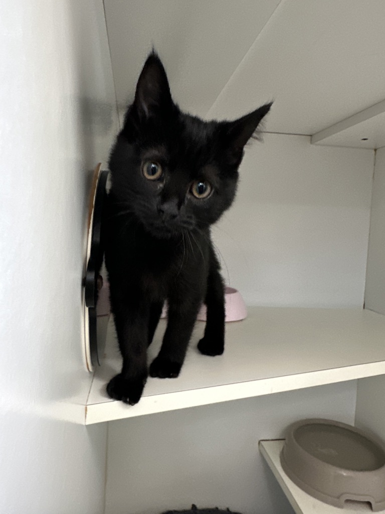 Hey there, I'm Zelda. I'm a friendly and affectionate kitten who would suit most homes! My playful paws are always ready to pounce on anything that moves. I love playing with wand toys and mysterious shadows on the wall! When I'm finished playing, I love nothing more than finding a warm lap to curl up in. I have perfected the art of the irresistible purr. It's like my secret weapon for getting all the cuddles and chin scratches I could ever want. Life's just one big, exciting string of moments, and I'm here to make every second count - whether I'm chasing my tail or sharing some purr-fectly quiet time with my favourite humans. So, if you're up for a bundle of furry fun and a lifetime of companionship, please consider adopting me!