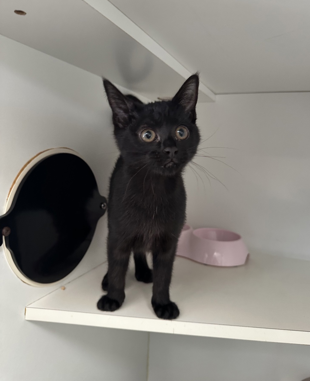 Hey there, I'm Ziggy. I'm a friendly and affectionate kitten who would suit most homes! My playful paws are always ready to pounce on anything that moves. I love playing with wand toys and mysterious shadows on the wall! When I'm finished playing, I love nothing more than finding a warm lap to curl up in. I have perfected the art of the irresistible purr. It's like my secret weapon for getting all the cuddles and chin scratches I could ever want. Life's just one big, exciting string of moments, and I'm here to make every second count - whether I'm chasing my tail or sharing some purr-fectly quiet time with my favourite humans. So, if you're up for a bundle of furry fun and a lifetime of companionship, please consider adopting me!